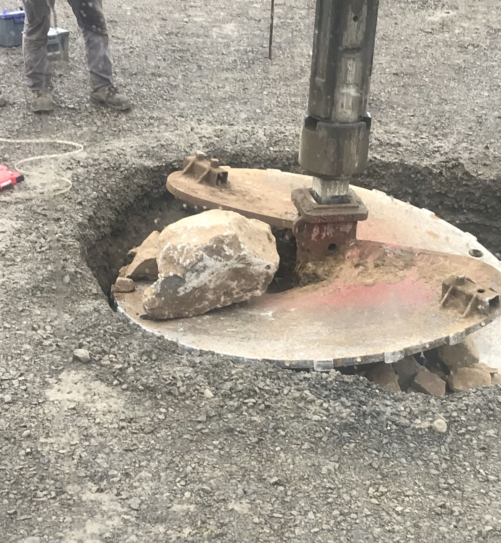 Installed drilled pier foundations, CMPs for direct embed pole and plate anchors. Drilled pier foundation sizes 6’ to 7.5’ diameter up to 27’ deep. (41) CMPs for direct embed poles & (41) plate anchors. Project challenges included varying ground conditions consisting of solid bedrock, boulders over 5’ in diameter and loose caving sands that required temporary shoring and polymer slurry for hole stabilization.