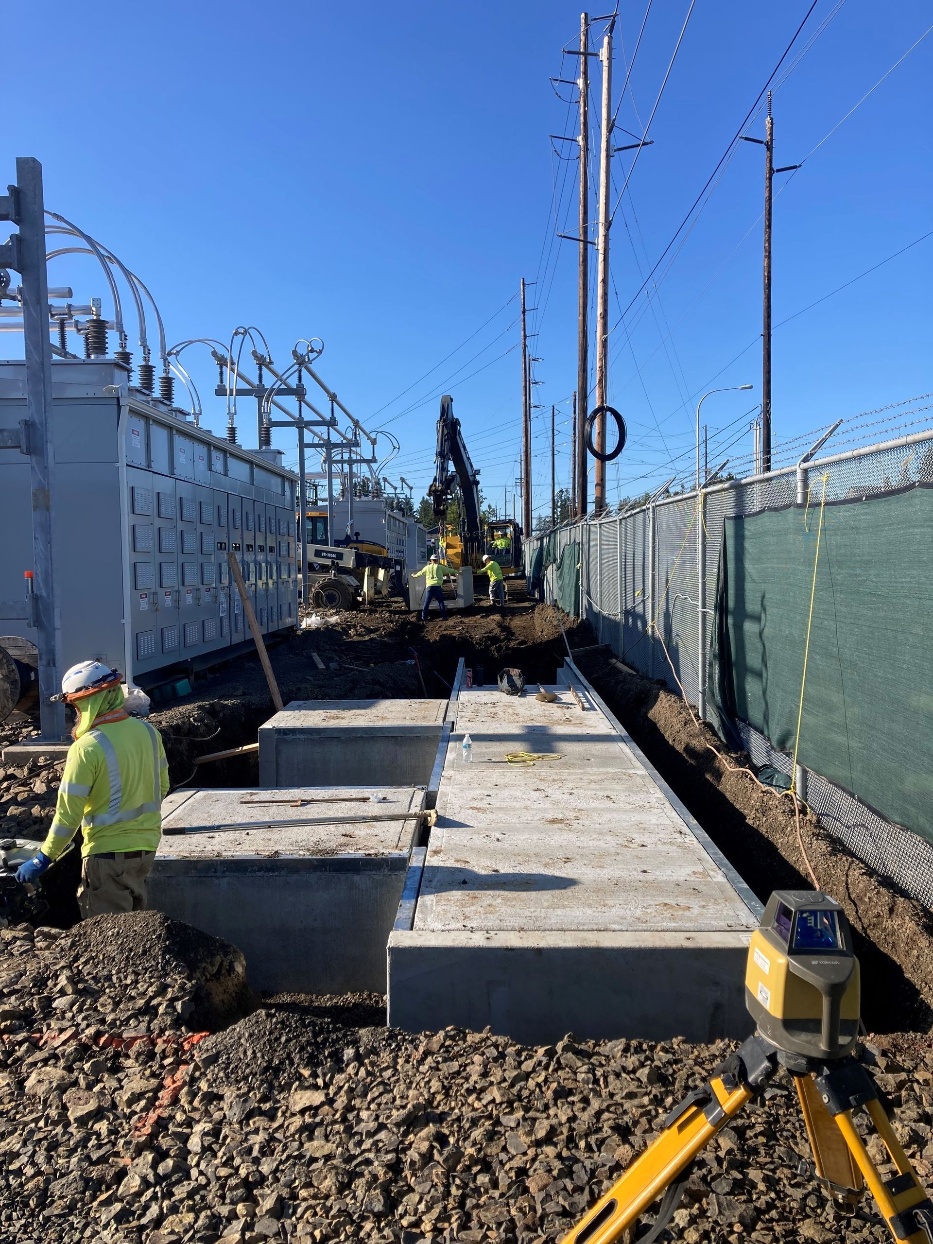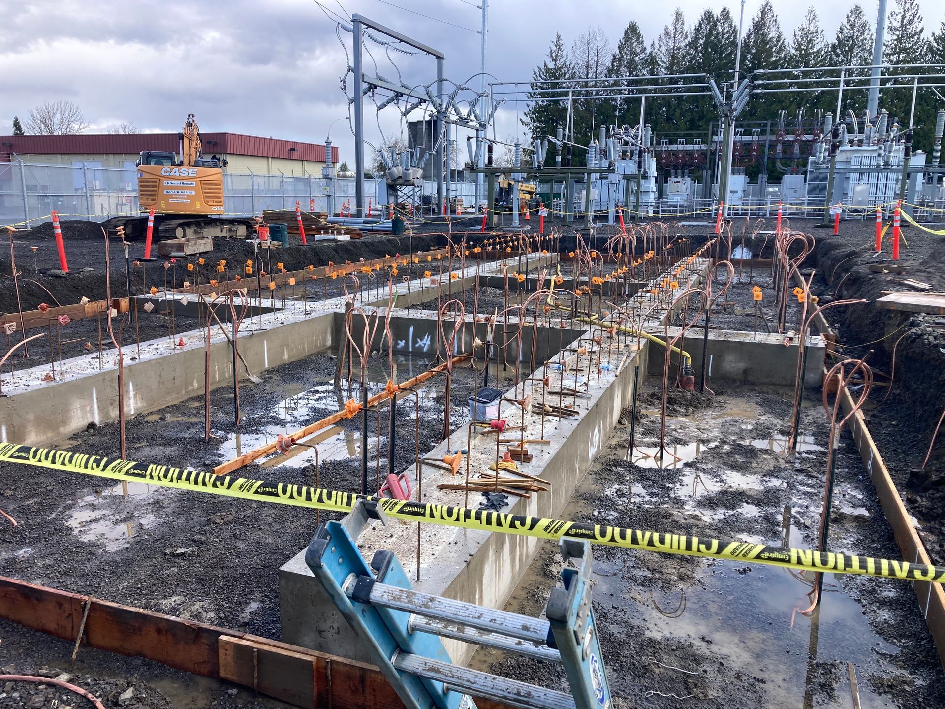 Installed foundations, ground grid, conduit & cable trench for (5) new 115kV bays, control house, switchgears, transformers, and cap banks at the existing substation site. Foundation types included drilled piers, slab on grade and spread footings. Replace mesh and barb wire on existing fence. Oil containment system including shield areas around transformers, piping and pit with discharge into detention pond. Installation of new surfacing rock over entire substation once the project was complete. Challenges included large cable trench installed in very tight working conditions between switchgears and fence, very soft caving soils in drilled pier construction and excessive groundwater and runoff management.