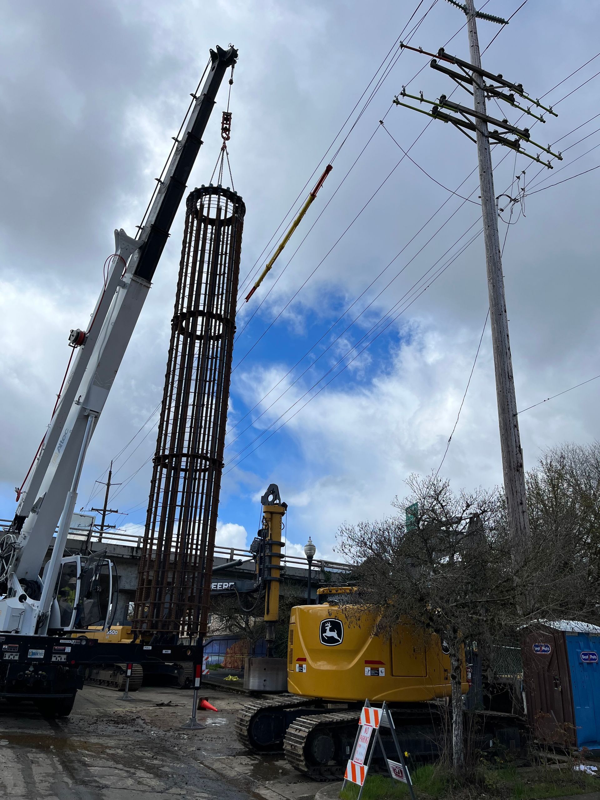 Installed (1) drilled pier foundation for new transmission structure. Pier size was 6.5’ diameter x 33’ deep. Site was located next to the Willamette River which led to high groundwater and caving soils requiring the use of polymer slurry for hole stabilization.